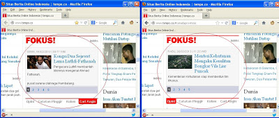 Gambar pertama adalah ketika awal masuk ke tempo.co alias default pagenya ke situ. yang muncul berita di fokus adalah tentang LHI (Lutfi Hasan Ishaq).